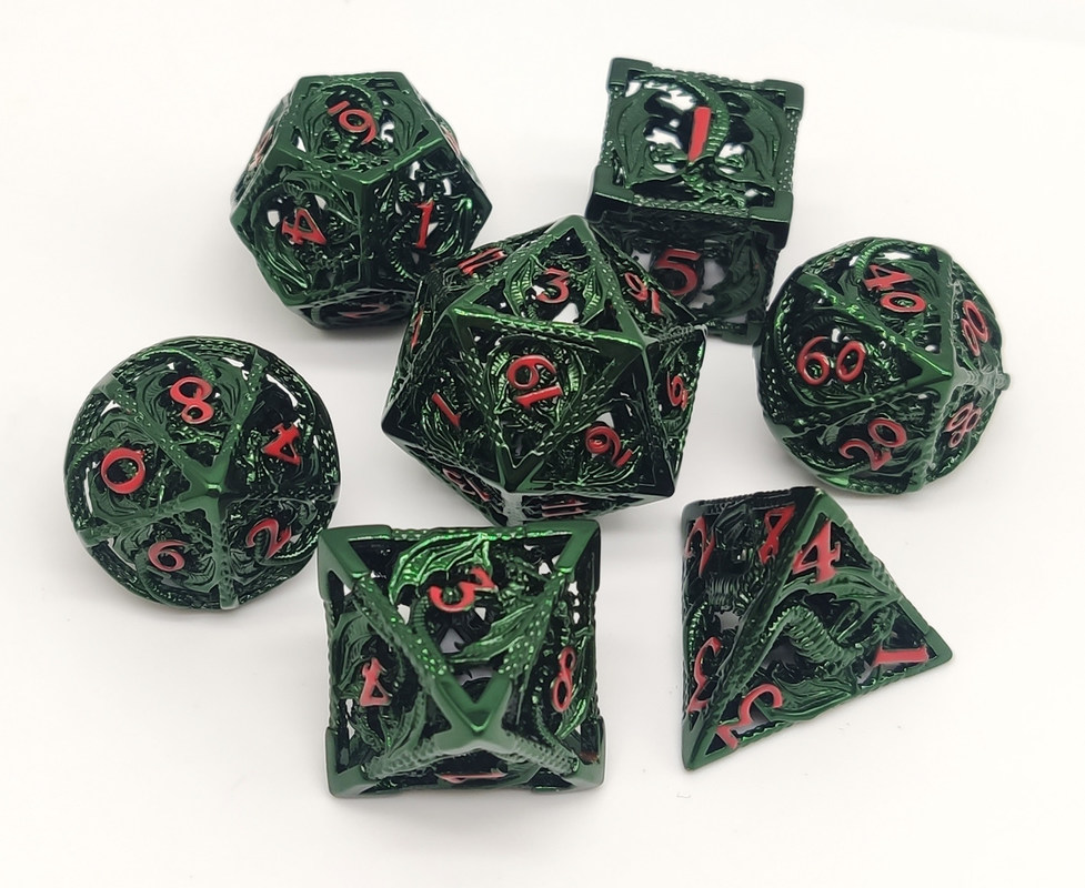 Bộ đầy đủ bảy viên xúc xắc đa diện sắc cạnh, được đổ thủ công, đánh bóng và chà nhám với độ mịn phi thường. Xúc xắc sắc cạnh được làm bằng tay, chà nhám, đánh bóng bằng tay. Bảy viên xúc xắc đa diện. Làm bằng tay và chạm khắc thủ công.